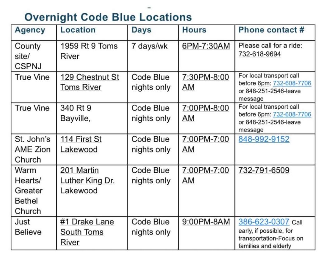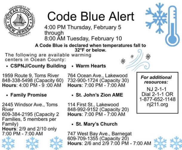 MAIN NEW JERSEY CODE BLUE AND WARMING CENTER INFORMATION