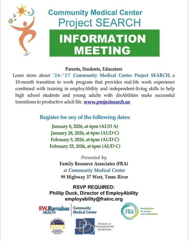 Learn about Community Medical Center Project SEARCH, a ten-month transition to work program, by attending a virtual session on either 2/25, at 6:00 pm.