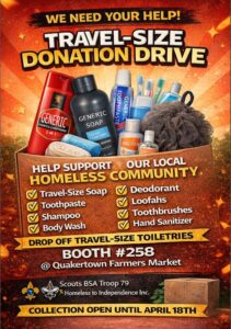 3. Travel-Size Donation Drive!! We are joining with local Scout Troop 79 and collecting