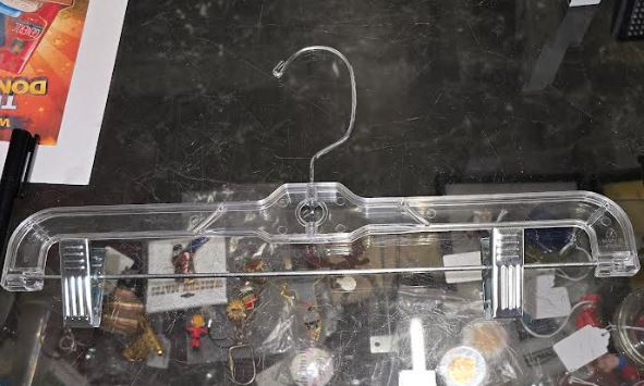 e) PANTS HANGERS WITH METAL CLIPS;